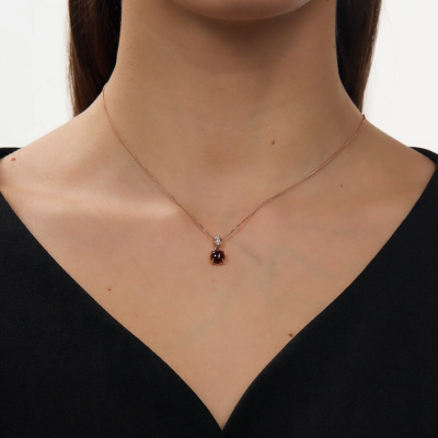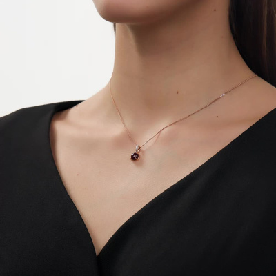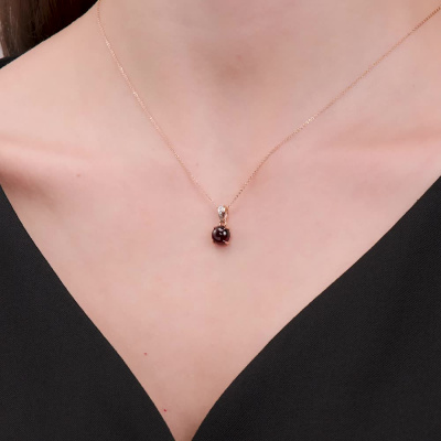 Подвеска с 3 бриллиантами природными, 0.01 карат, огранка круг 17 граней, цвет 2, чистота 2, тип огранки А; 1 гранатом природным, 1.99 карат; Розовое золото 585 пробы.