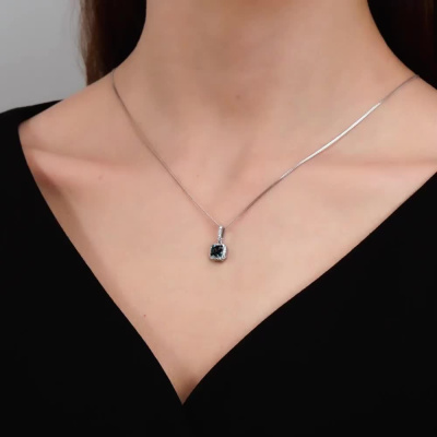 Подвеска с 26 бриллиантами природными, 0.1 карат, огранка круг 17 граней, цвет 2, чистота 2, тип огранки А; 1 топазом лондон природным, 0.75 карат; Белое золото 585 пробы.
