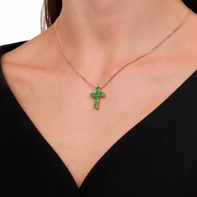 Подвеска с 6 изумрудами природными, 1.75 карат, цвет 3, чистота 3, тип огранки Б; Желтое золото 585 пробы.
