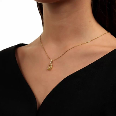 Подвеска с 3 бриллиантами природными, 0.01 карат, огранка круг 17 граней, цвет 2, чистота 2, тип огранки А; 1 кварцем лимонным природным, 2.19 карат; Желтое золото 585 пробы.