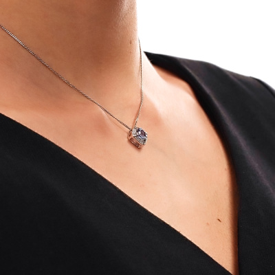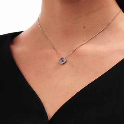 Подвеска с 16 бриллиантами природными, 0.05 карат, огранка круг 17 граней, цвет 2, чистота 2, тип огранки А; 8 бриллиантами природными, 0.01 карат, огранка круг 17 граней, цвет 2, чистота 2, тип огранки А; 1 танзанитом природным, 0.82 карат; Белое золото 585 пробы.
