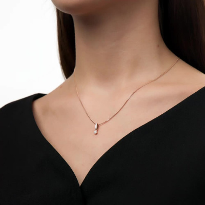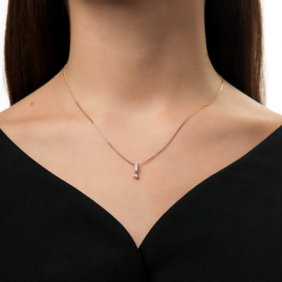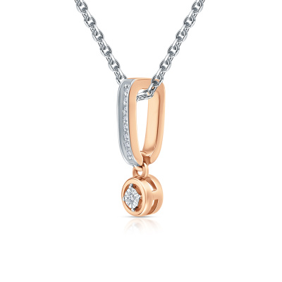 Подвеска с 1 бриллиантом природным, 0.002 карат, огранка круг 17 граней, цвет 2, чистота 2, тип огранки А; 8 бриллиантами природными, 0.01 карат, огранка круг 17 граней, цвет 2, чистота 2, тип огранки А; Розовое и белое золото 585 пробы.