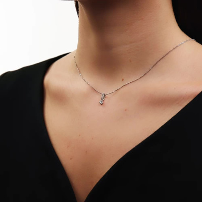 Подвеска с 1 бриллиантом природным, 0.003 карат, огранка круг 17 граней, цвет 2, чистота 2, тип огранки А; 8 бриллиантами природными, 0.01 карат, огранка круг 17 граней, цвет 2, чистота 2, тип огранки А; Белое золото 585 пробы.
