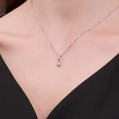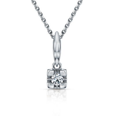Подвеска с 1 бриллиантом природным, 0.08 карат, огранка круг 57 граней, цвет 3, чистота 6, тип огранки А; Белое золото 585 пробы.