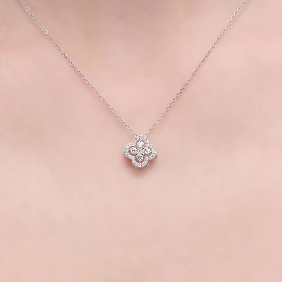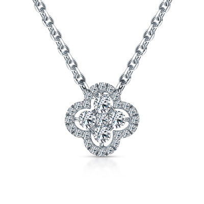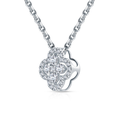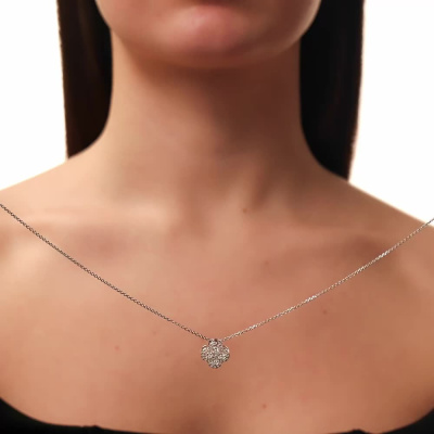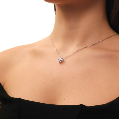 Подвеска с 4 бриллиантами выращенными, 0.33 карат, огранка круг 57 граней, цвет 3, чистота 6, тип огранки А; 1 бриллиантом выращенным, 0.02 карат, огранка круг 57 граней, цвет 3, чистота 6, тип огранки А; 24 бриллиантами выращенными, 0.16 карат, огранка круг 57 граней, цвет 3, чистота 6, тип огранки А; Белое золото 585 пробы.