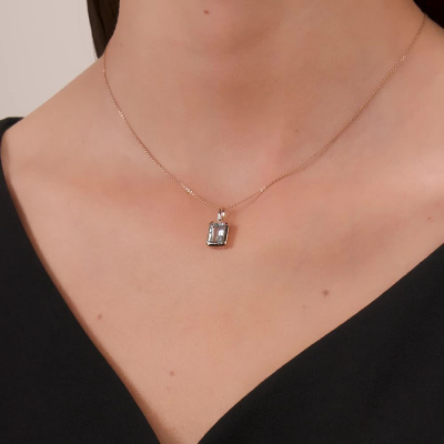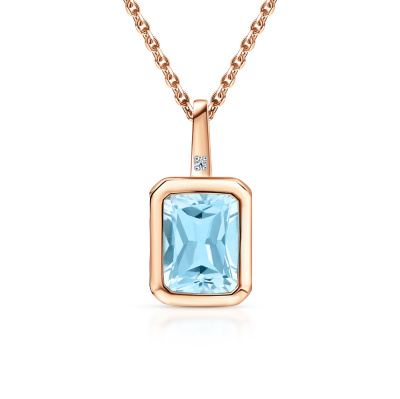 Подвеска с 1 бриллиантом природным, 0.004 карат, огранка круг 17 граней, цвет 2, чистота 2, тип огранки А; 1 топазом скай природным, 1.84 карат; Розовое золото 585 пробы.
