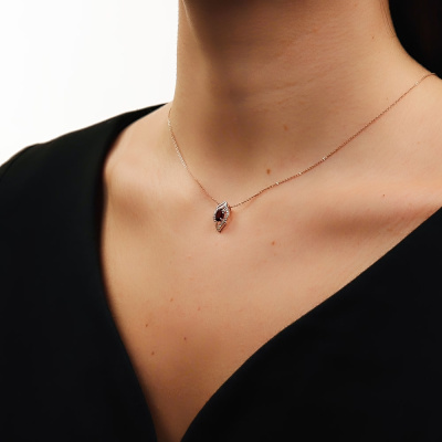 Подвеска с 18 бриллиантами природными, 0.08 карат, огранка круг 17 граней, цвет 2, чистота 2, тип огранки А; 1 гранатом природным, 0.56 карат; Розовое золото 585 пробы.