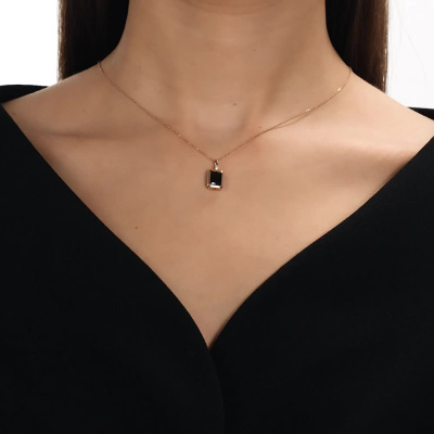 Подвеска с 1 бриллиантом природным, 0.005 карат, огранка круг 17 граней, цвет 2, чистота 2, тип огранки А; 1 кварцем дымчатым природным, 1.38 карат; Розовое золото 585 пробы.