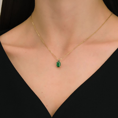 Подвеска с 1 изумрудом природным, 0.98 карат, цвет 3, чистота 3, тип огранки Б; Желтое золото 585 пробы.