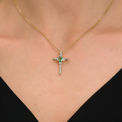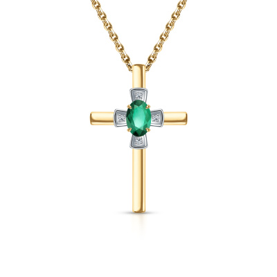 Подвеска с 4 бриллиантами природными, 0.02 карат, огранка круг 17 граней, цвет 2, чистота 2, тип огранки Б; 1 изумрудом природным, 0.39 карат, цвет 3, чистота 3, тип огранки Б; Желтое золото 585 пробы.