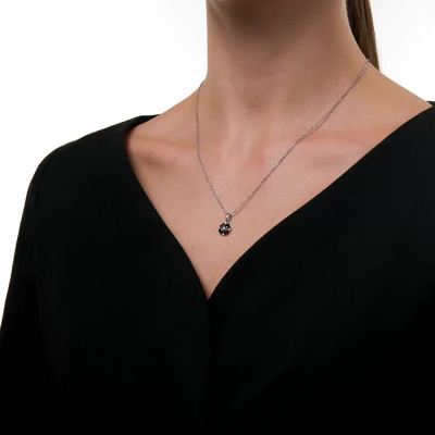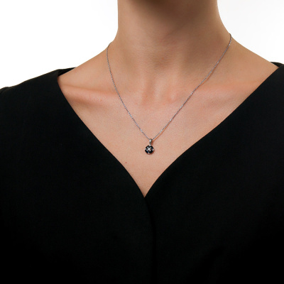 Подвеска с 1 бриллиантом природным, 0.03 карат, огранка круг 57 граней, цвет 3, чистота 6, тип огранки А; 4 бриллиантами природными, 0.03 карат, огранка круг 57 граней, цвет 3, чистота 6, тип огранки А; 4 сапфирами природными, 0.84 карат, цвет 2, чистота 2, тип огранки Б; Белое золото 585 пробы.