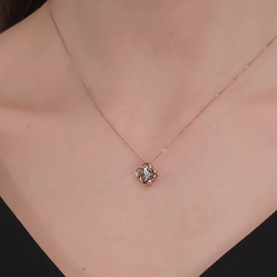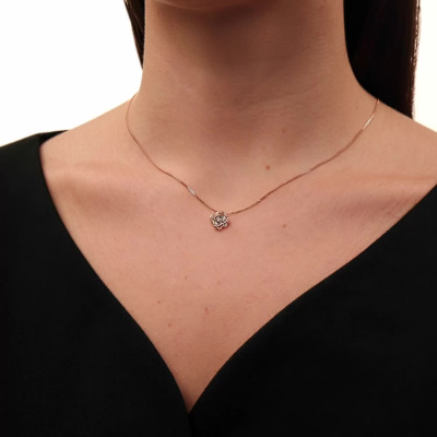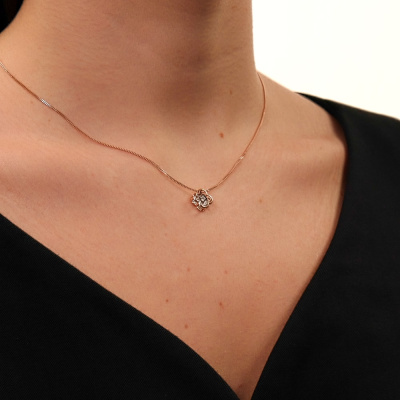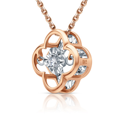 Подвеска с 1 бриллиантом природным, 0.02 карат, огранка круг 57 граней, цвет 3, чистота 6, тип огранки А; Розовое и белое золото 585 пробы.