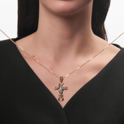 Подвеска с 4 бриллиантами природными, 0.01 карат, огранка круг 17 граней, цвет 2, чистота 2, тип огранки Б; Розовое и белое золото 585 пробы.
