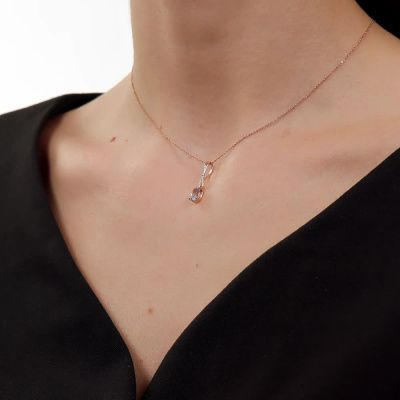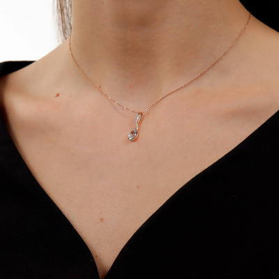 Подвеска с 5 бриллиантами природными, 0.02 карат, огранка круг 17 граней, цвет 2, чистота 2, тип огранки А; 1 топазом скай природным, 0.9 карат; Розовое золото 585 пробы.