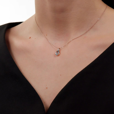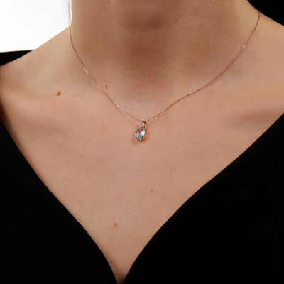 Подвеска с 1 бриллиантом природным, 0.005 карат, огранка круг 17 граней, цвет 2, чистота 2, тип огранки А; 1 топазом скай природным, 1.46 карат; Розовое золото 585 пробы.