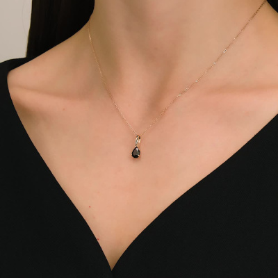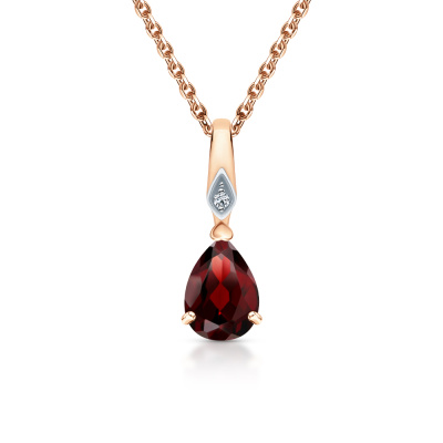 Подвеска с 1 бриллиантом природным, 0.005 карат, огранка круг 17 граней, цвет 2, чистота 2, тип огранки А; 1 гранатом природным, 0.85 карат; Розовое золото 585 пробы.