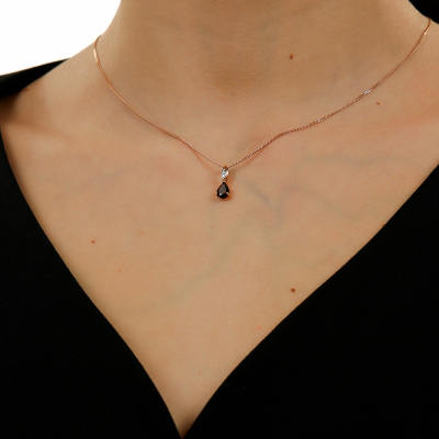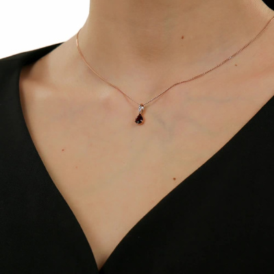 Подвеска с 1 бриллиантом природным, 0.004 карат, огранка круг 17 граней, цвет 2, чистота 2, тип огранки А; 1 гранатом природным, 0.79 карат; Розовое золото 585 пробы.