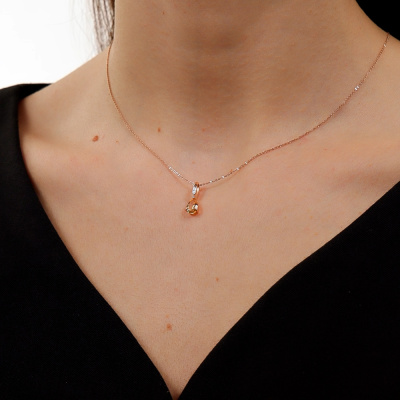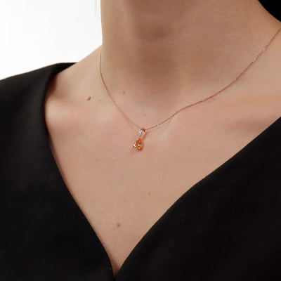 Подвеска с 1 бриллиантом природным, 0.004 карат, огранка круг 17 граней, цвет 2, чистота 2, тип огранки А; 1 цитрином природным, 0.63 карат; Розовое золото 585 пробы.