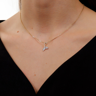 Подвеска с 21 бриллиантом природным, 0.06 карат, огранка круг 17 граней, цвет 2, чистота 2, тип огранки А; Желтое золото 585 пробы.