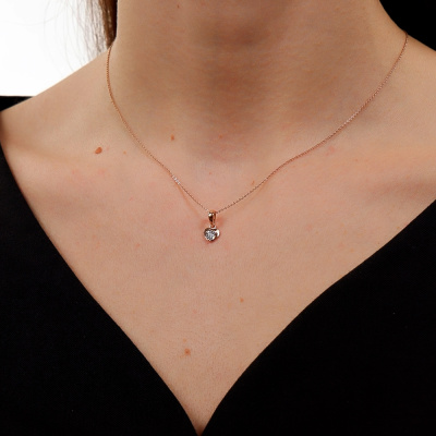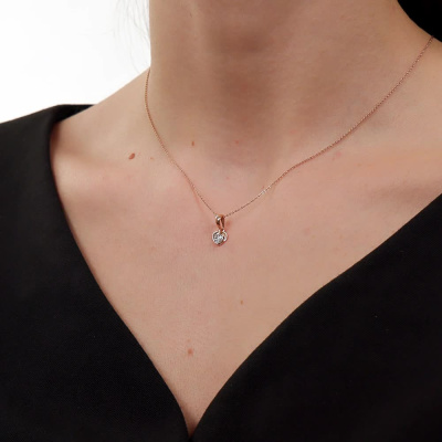 Подвеска с 1 бриллиантом природным, 0.007 карат, огранка круг 17 граней, цвет 2, чистота 2, тип огранки А; Розовое золото 375 пробы.