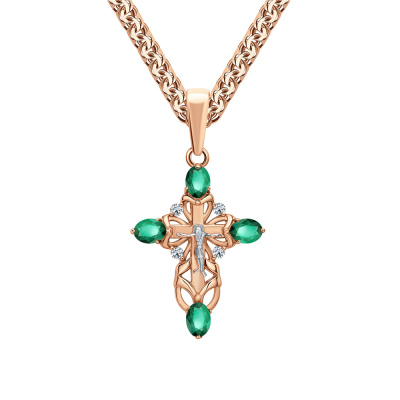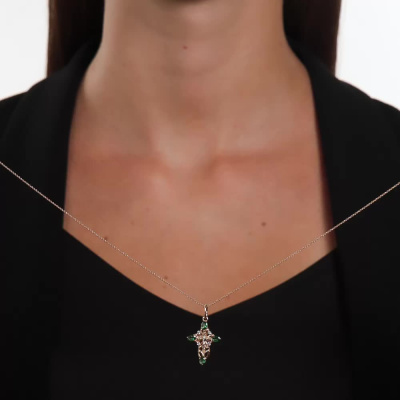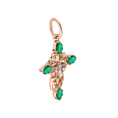 Подвеска с 4 ситаллами изумруд, 1.2 карат; Розовое золото 585 пробы.