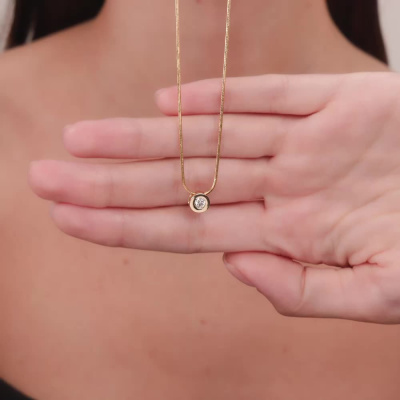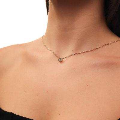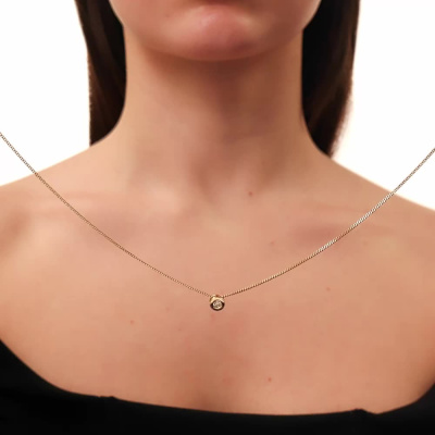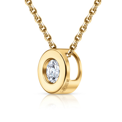 Подвеска с 1 бриллиантом выращенным, 0.16 карат, огранка круг 57 граней, цвет 3, чистота 6, тип огранки А; Желтое золото 585 пробы.
