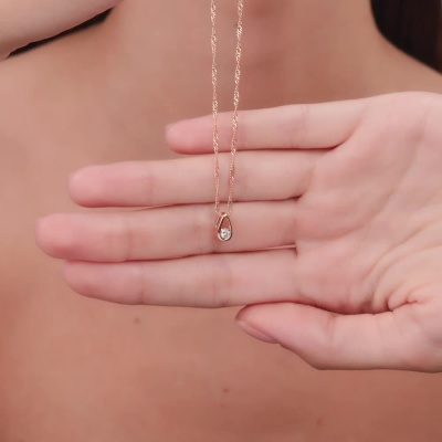 Подвеска с 1 бриллиантом выращенным, 0.11 карат, огранка круг 57 граней, цвет 3, чистота 6, тип огранки А; Розовое золото 585 пробы.