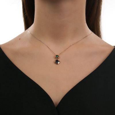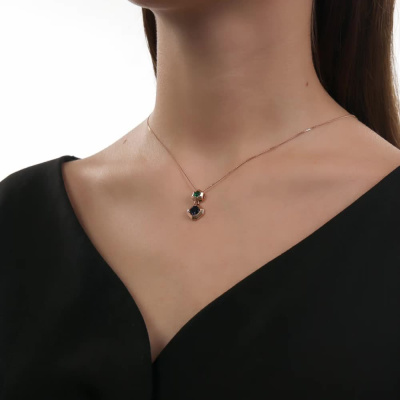 Золотая подвеска с сапфиром выращенным и изумрудом выращенным