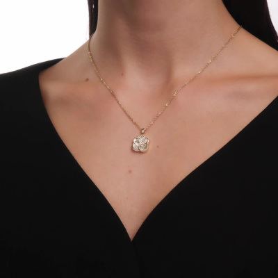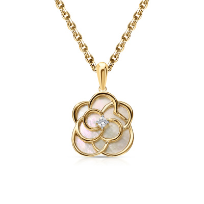 Золотая подвеска с бриллиантами природными и перламутром природным