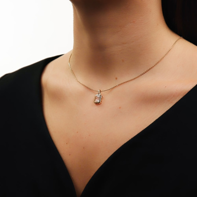 Золотая подвеска с бриллиантами природными и хрусталем