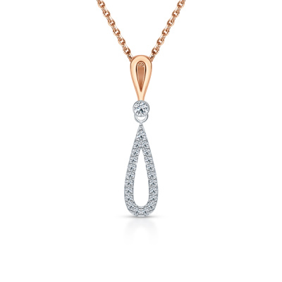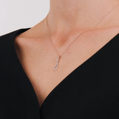 Подвеска с 1 бриллиантом природным, 0.03 карат, огранка круг 57 граней, цвет 3, чистота 6, тип огранки А; 1 бриллиантом природным, 0.01 карат, огранка круг 57 граней, цвет 3, чистота 6, тип огранки А; 20 бриллиантами природными, 0.09 карат, огранка круг 17 граней, цвет 2, чистота 2, тип огранки А; Розовое золото 585 пробы.
