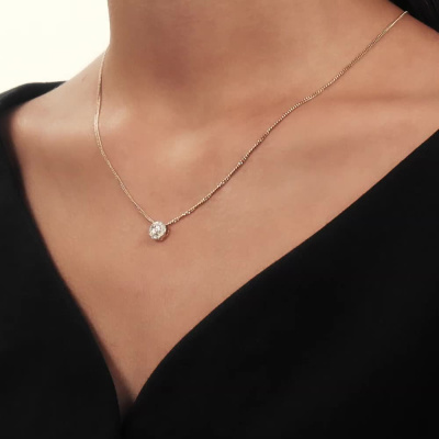 Подвеска с 1 бриллиантом природным, 0.01 карат, огранка круг 57 граней, цвет 3, чистота 6, тип огранки А; 8 бриллиантами природными, 0.03 карат, огранка круг 17 граней, цвет 2, чистота 2, тип огранки А; Желтое и белое золото 585 пробы.