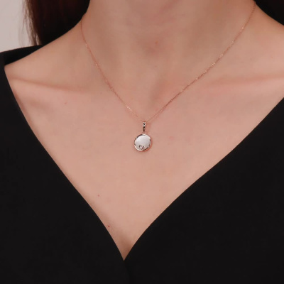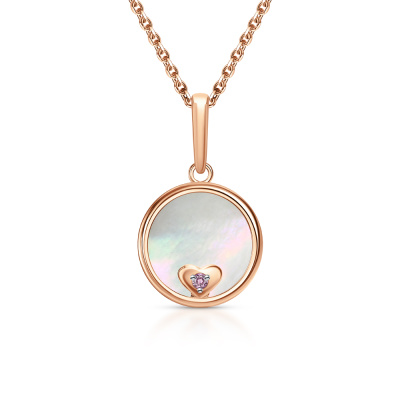 Подвеска с 1 сапфиром розовым природным, 0.02 карат; 1 перламутром белым природным; Розовое золото 585 пробы.