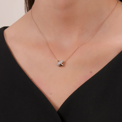 Подвеска с 31 бриллиантом природным, 0.15 карат, огранка круг 17 граней, цвет 2, чистота 2, тип огранки А; Розовое золото 585 пробы.