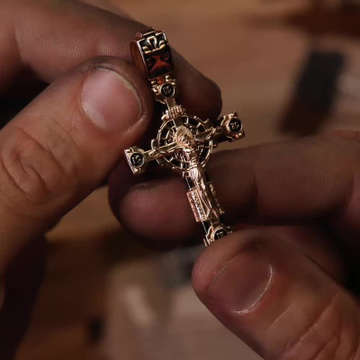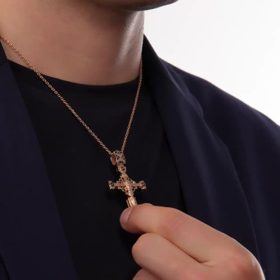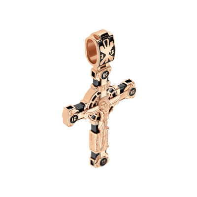 Подвеска с 5 ониксами черными природными; эмаль черная; Розовое золото 585 пробы.