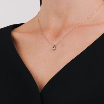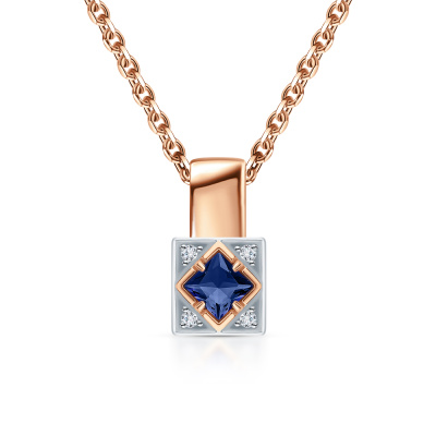 Подвеска с 4 бриллиантами природными, 0.01 карат, огранка круг 17 граней, цвет 2, чистота 2, тип огранки А; 1 сапфиром природным, 0.11 карат, цвет 2, чистота 2, тип огранки В; Розовое золото 585 пробы.