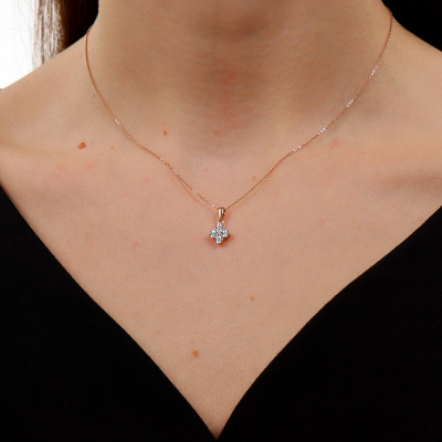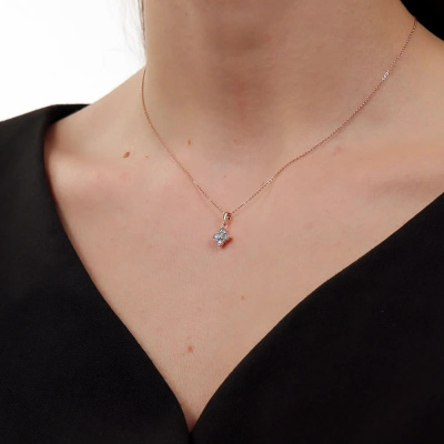Подвеска с 4 бриллиантами природными, 0.03 карат, огранка круг 17 граней, цвет 2, чистота 2, тип огранки А; Розовое и белое золото 585 пробы.