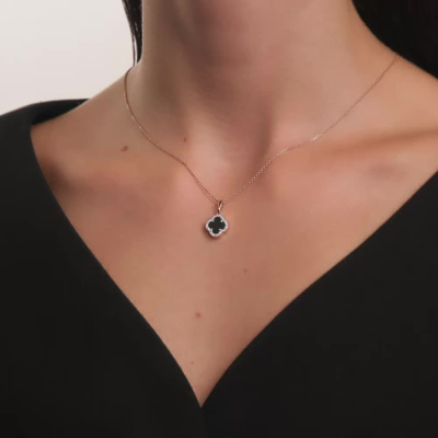 Подвеска с 24 бриллиантами природными, 0.08 карат, огранка круг 17 граней, цвет 2, чистота 2, тип огранки А; 1 агатом черным природным, 0.95 карат; Розовое золото 585 пробы.