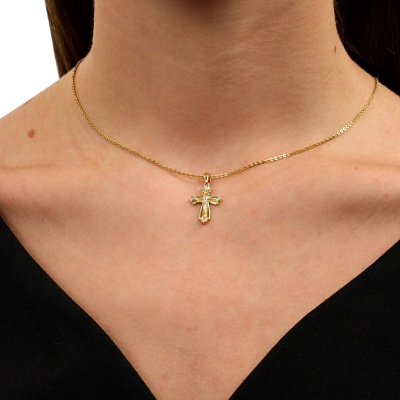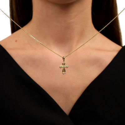 Подвеска с 4 бриллиантами природными, 0.01 карат, огранка круг 17 граней, цвет 2, чистота 2, тип огранки А; Желтое золото 585 пробы.