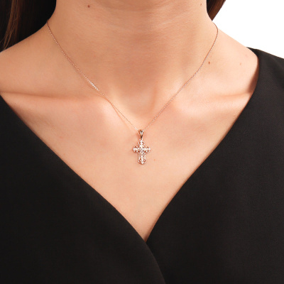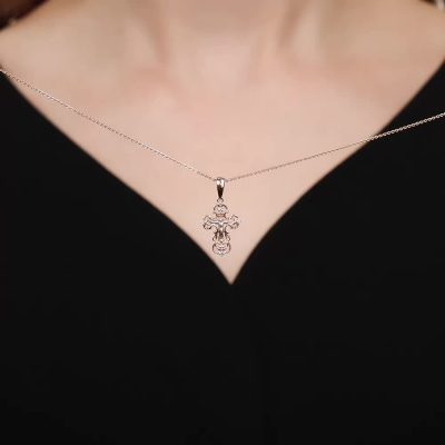 Подвеска с 6 бриллиантами природными, 0.03 карат, огранка круг 17 граней, цвет 2, чистота 2, тип огранки А; Розовое и белое золото 585 пробы.
