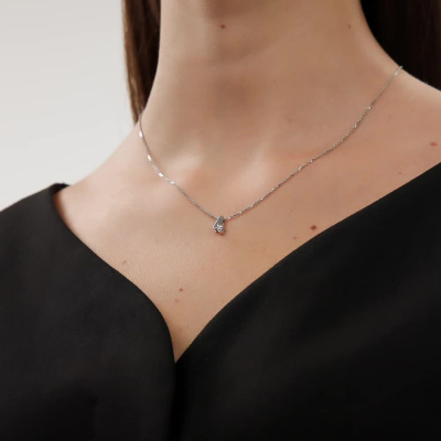 Подвеска с 1 бриллиантом природным, 0.002 карат, огранка круг 17 граней, цвет 3, чистота 3, тип огранки Б; Серебро 925 пробы.