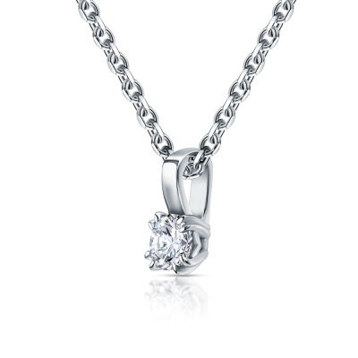 Подвеска с 1 бриллиантом выращенным, 0.21 карат, огранка круг 57 граней, цвет 3, чистота 6, тип огранки А; Белое золото 585 пробы.