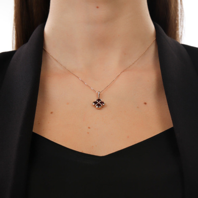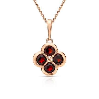 Подвеска с 4 гранатами природными, 1.26 карат; Розовое золото 585 пробы.