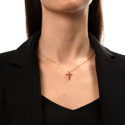 Подвеска с 11 родолитами природными, 0.95 карат; Розовое золото 585 пробы.