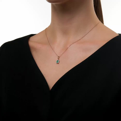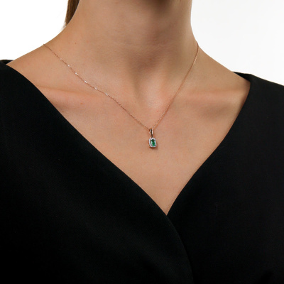 Подвеска с 24 бриллиантами природными, 0.04 карат, огранка круг 17 граней, цвет 2, чистота 2, тип огранки А; 1 изумрудом природным, 0.41 карат, цвет 3, чистота 3, тип огранки Б; Розовое золото 585 пробы.