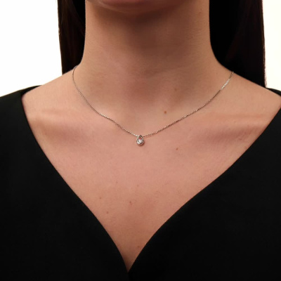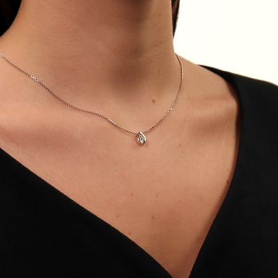 Подвеска с 1 бриллиантом природным, 0.15 карат, огранка круг 57 граней, цвет 4, чистота 6, тип огранки А; Белое золото 585 пробы.