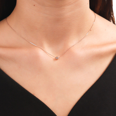 Подвеска с 1 бриллиантом природным, 0.004 карат, огранка круг 17 граней, цвет 2, чистота 2, тип огранки А; Розовое золото 585 пробы.