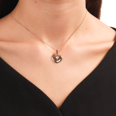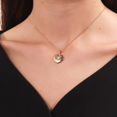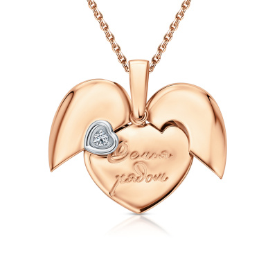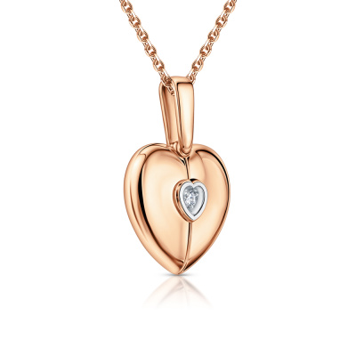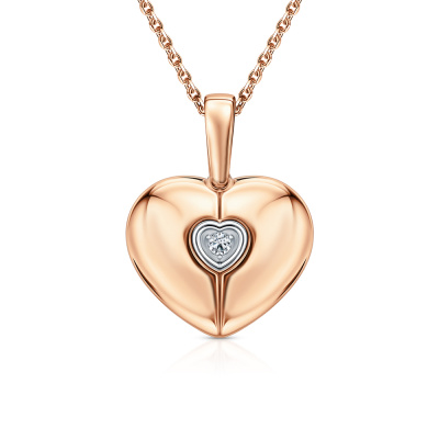 Подвеска с 1 бриллиантом природным, 0.03 карат, огранка круг 57 граней, цвет 3, чистота 6, тип огранки А; Розовое золото 585 пробы.
