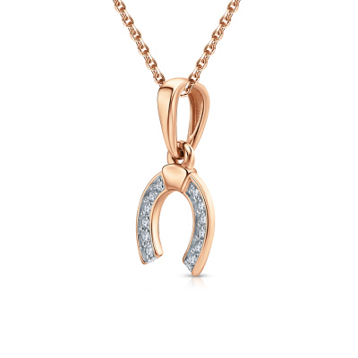 Подвеска с 12 бриллиантами природными, 0.05 карат, огранка круг 17 граней, цвет 2, чистота 2, тип огранки А; Розовое золото 585 пробы.