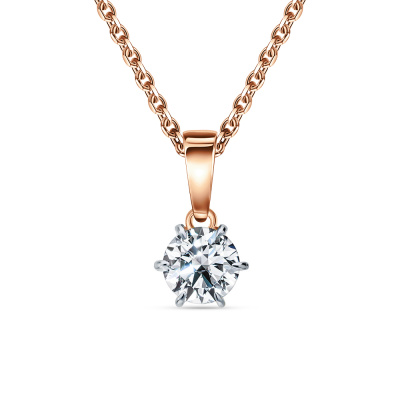 Подвеска с 1 бриллиантом выращенным, 0.54 карат, огранка круг 57 граней, цвет 4, чистота 5, тип огранки А; Розовое золото 585 пробы.